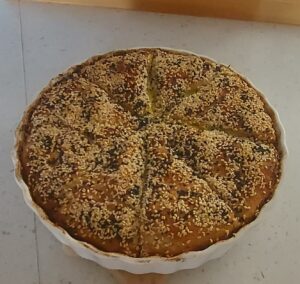 Cut the pastry into desired pieces, brush with egg yolk and sprinkle with sesame and black cumin.