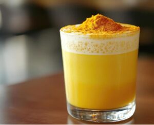 • Zlatno mlijeko (Turmeric Latte): Ovaj topli napitak napravljen je od kurkume, đumbira, cimeta i biljnog mlijeka. Kurkuma ima jaka protuupalna svojstva, a crni papar povećava njezinu apsorpciju u tijelu.