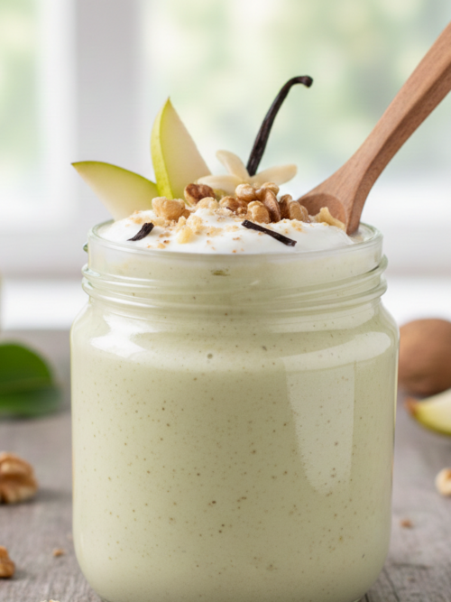 🍐 Hruška & oreh za obnavljanje Sestavine: 1 hruška 1 pest orehov ½ skodelice grškega jogurta malo vanilje voda po potrebi Učinek: Orehi = omega-3, ki krep