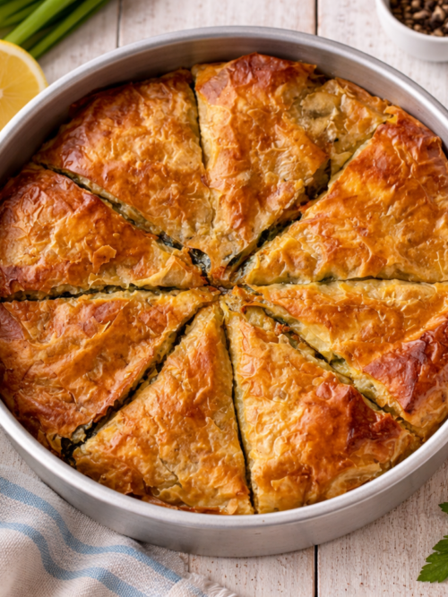 🥧 Povrćna pita od praziluka, šargarepe i crnog luka 🛒 Sastojci • 500 g lisnatog testa (korme za pitu/burek) • 2 velika praziluka • 2 šargarepe • 1 veliki c